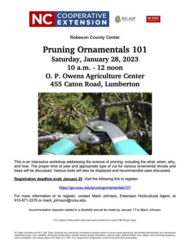 For more information or to register, contact Mack Johnson, Extension Horticultural Agent, at 910-671-3276 or mack_johnson@ncsu.edu.